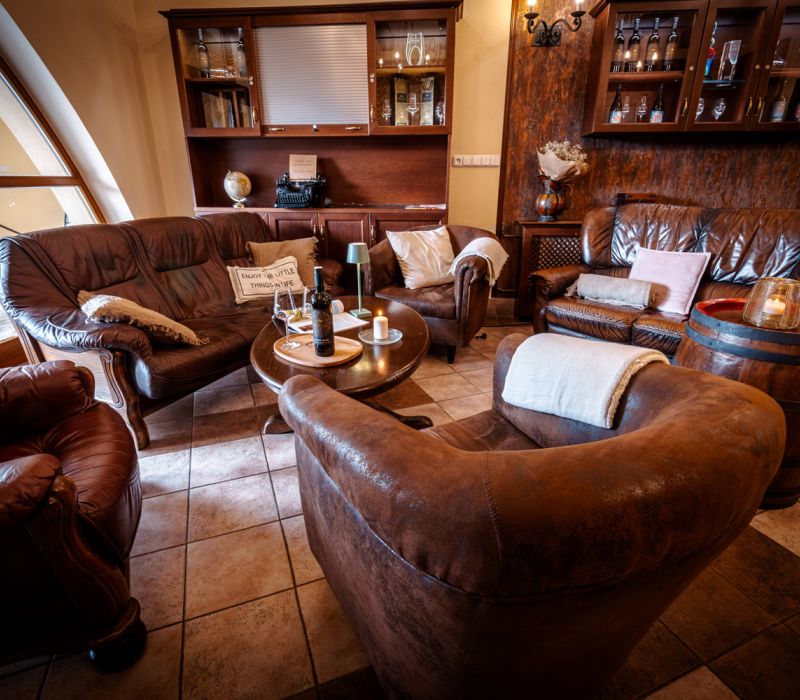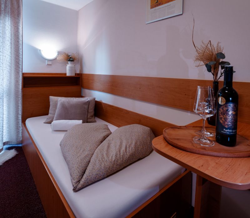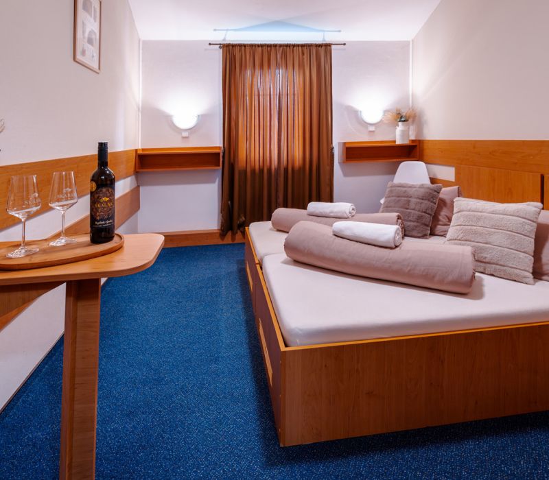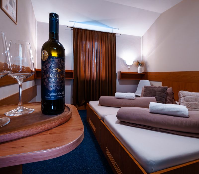 Ubytování ve 29 pokojích přímo v areálu vinařství. Můžete si vybrat standardní pokoj nebo komfortní apartmá.