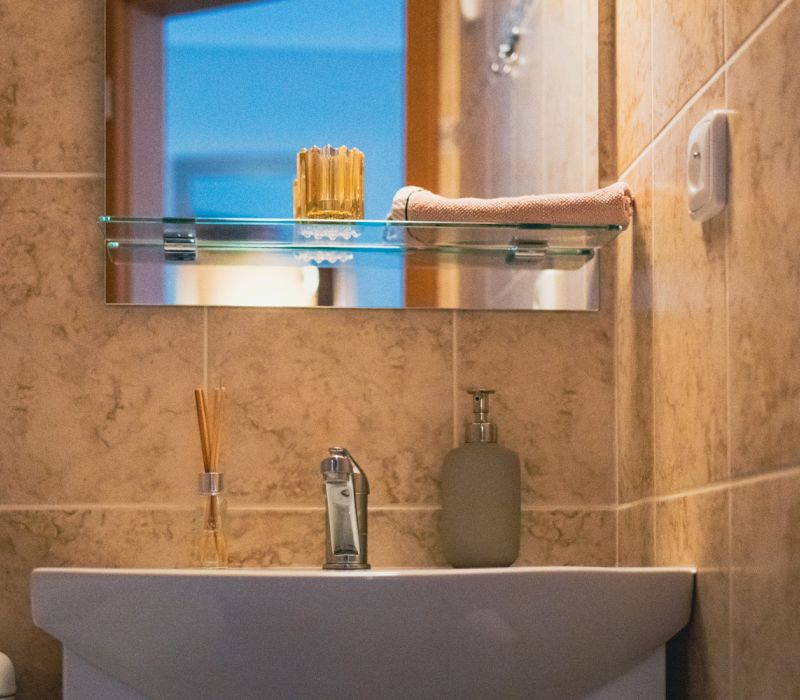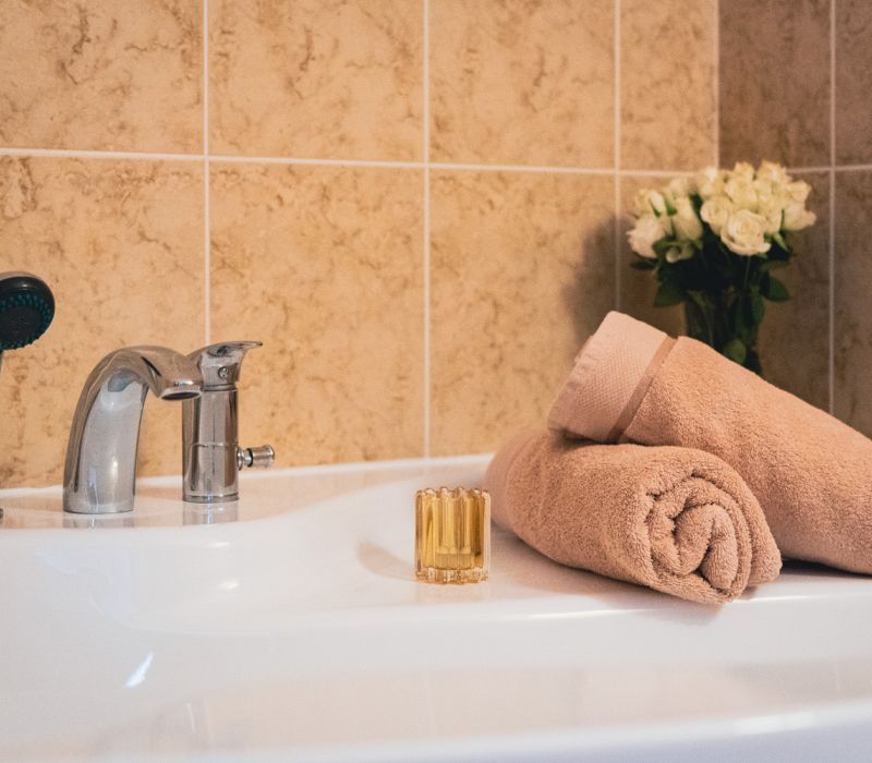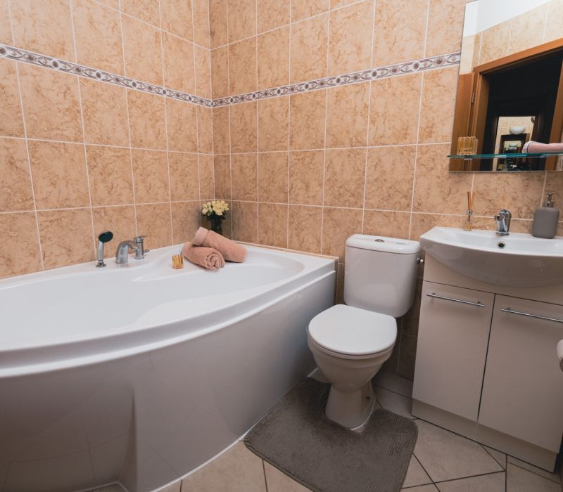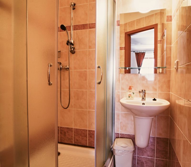 Každý pokoj má k dispozici vlastní koupelnu se sprchovým koutem a WC.