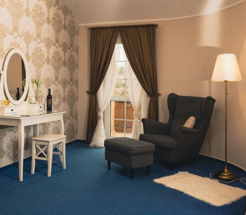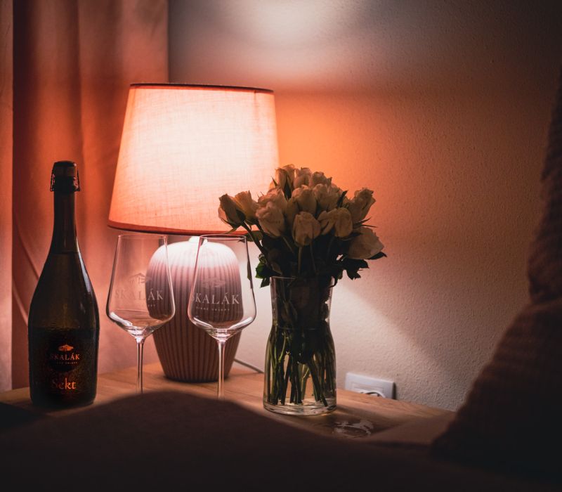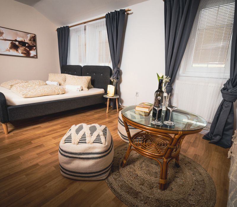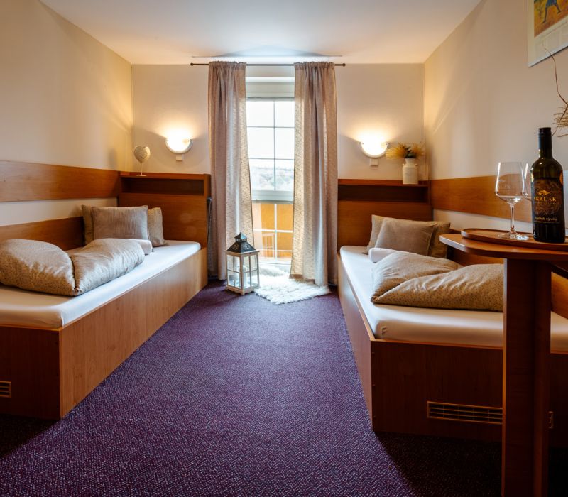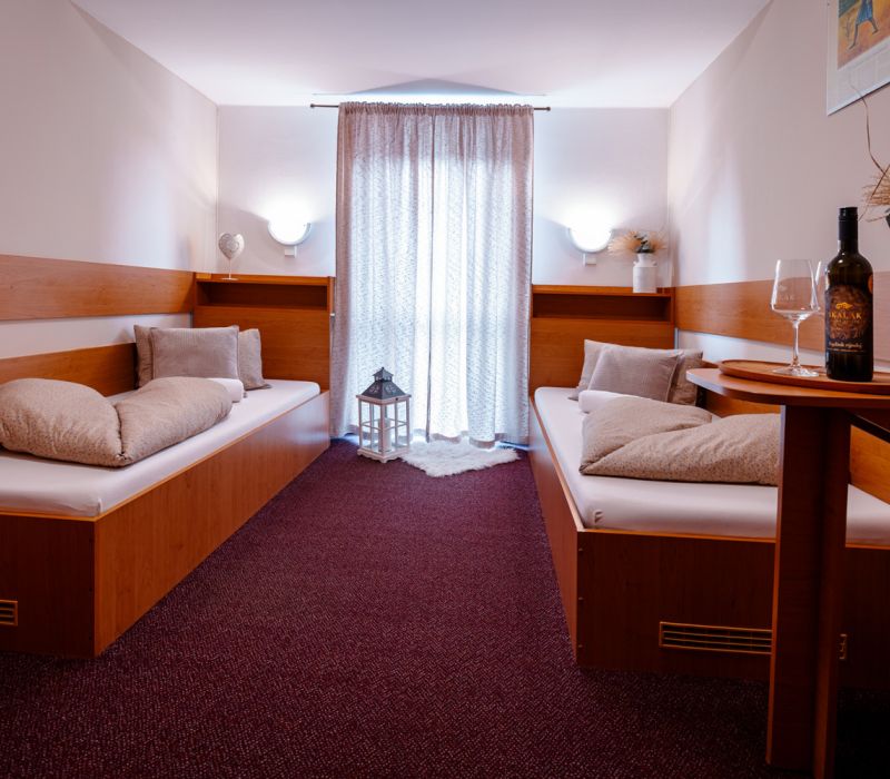 Ubytování ve 29 pokojích přímo v areálu vinařství. Můžete si vybrat standardní pokoj nebo komfortní apartmá.