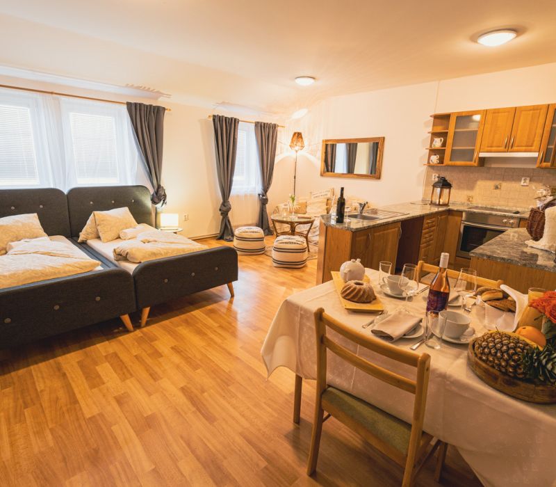 2x apartmán (č. 108 a 116) velikost 28 m², manželské postele