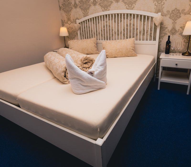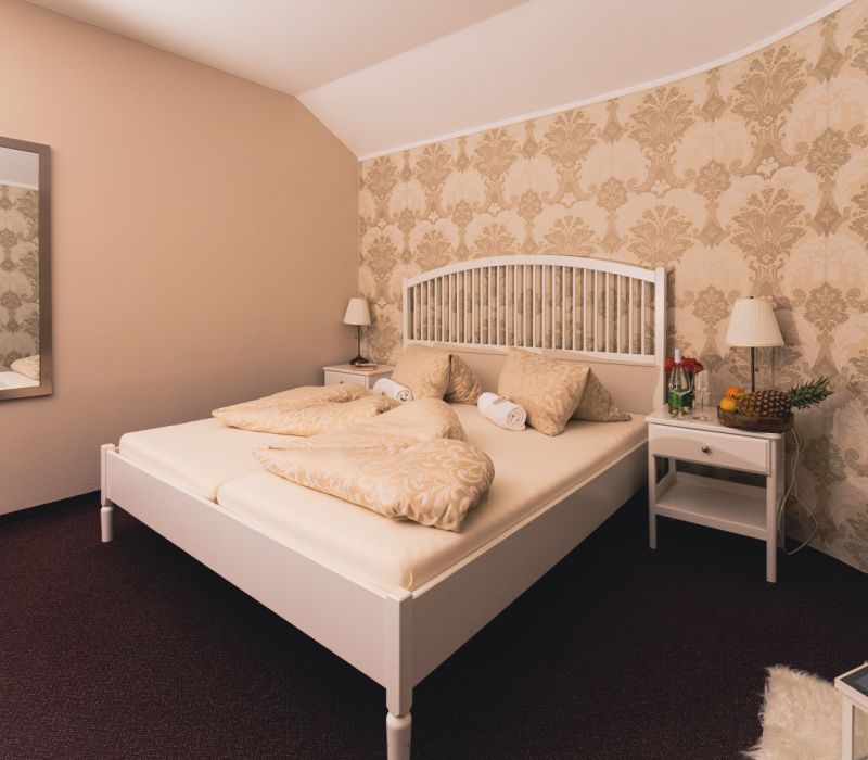 2x dvoulůžkový manželská postel (14 m²) s vlastní koupelnou a WC